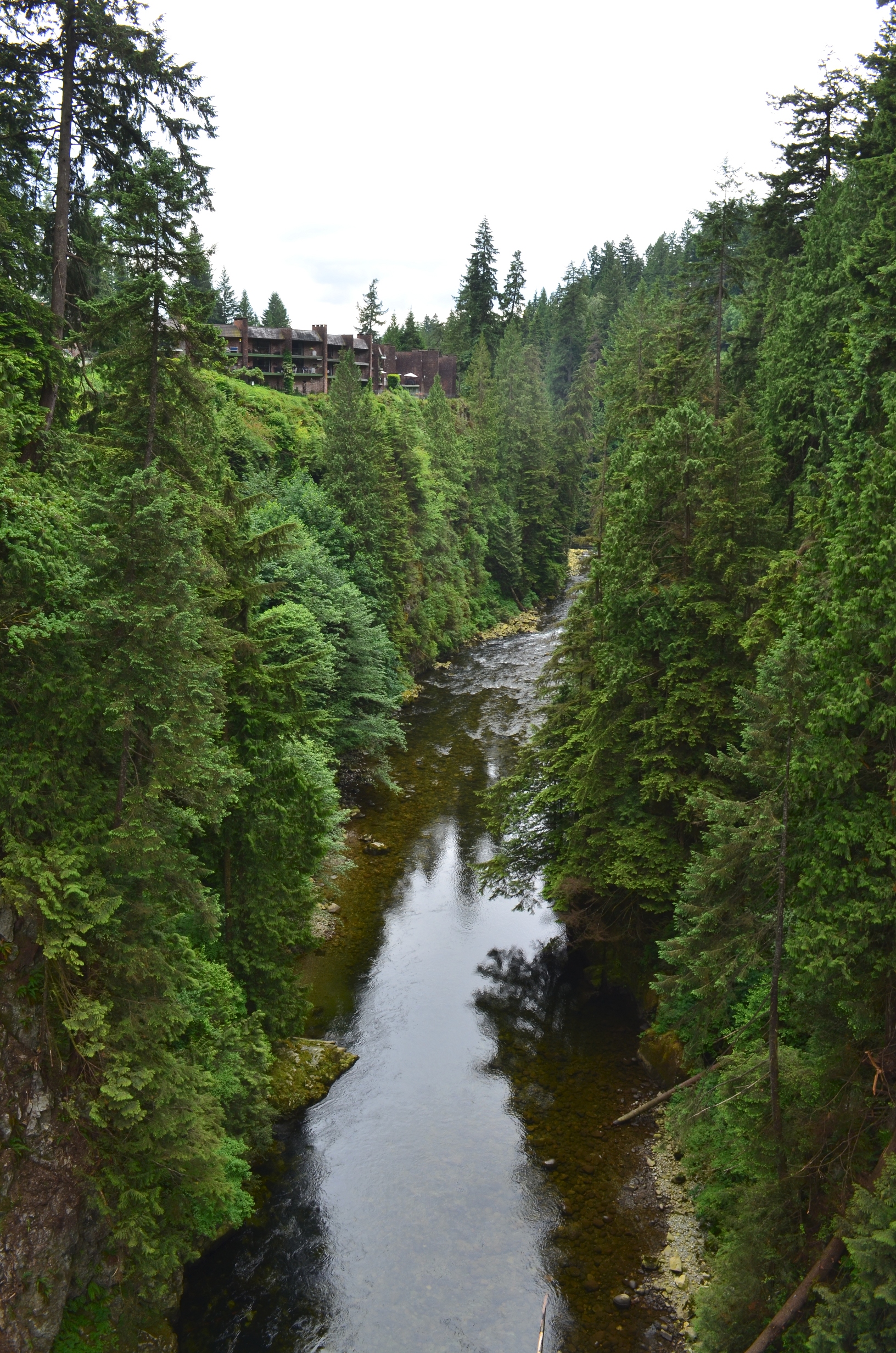 The bridge is located on the Capilano River in Capilano Suspension Bridge Park, a small private park in North Vancouver, British Columbia. The bridge is the main attraction of an eco-tourism operation, of which also includes a large tree fort, a skywalk, a gift shop, restaurant, and more. Access to these extras mitigates the high entry fee.