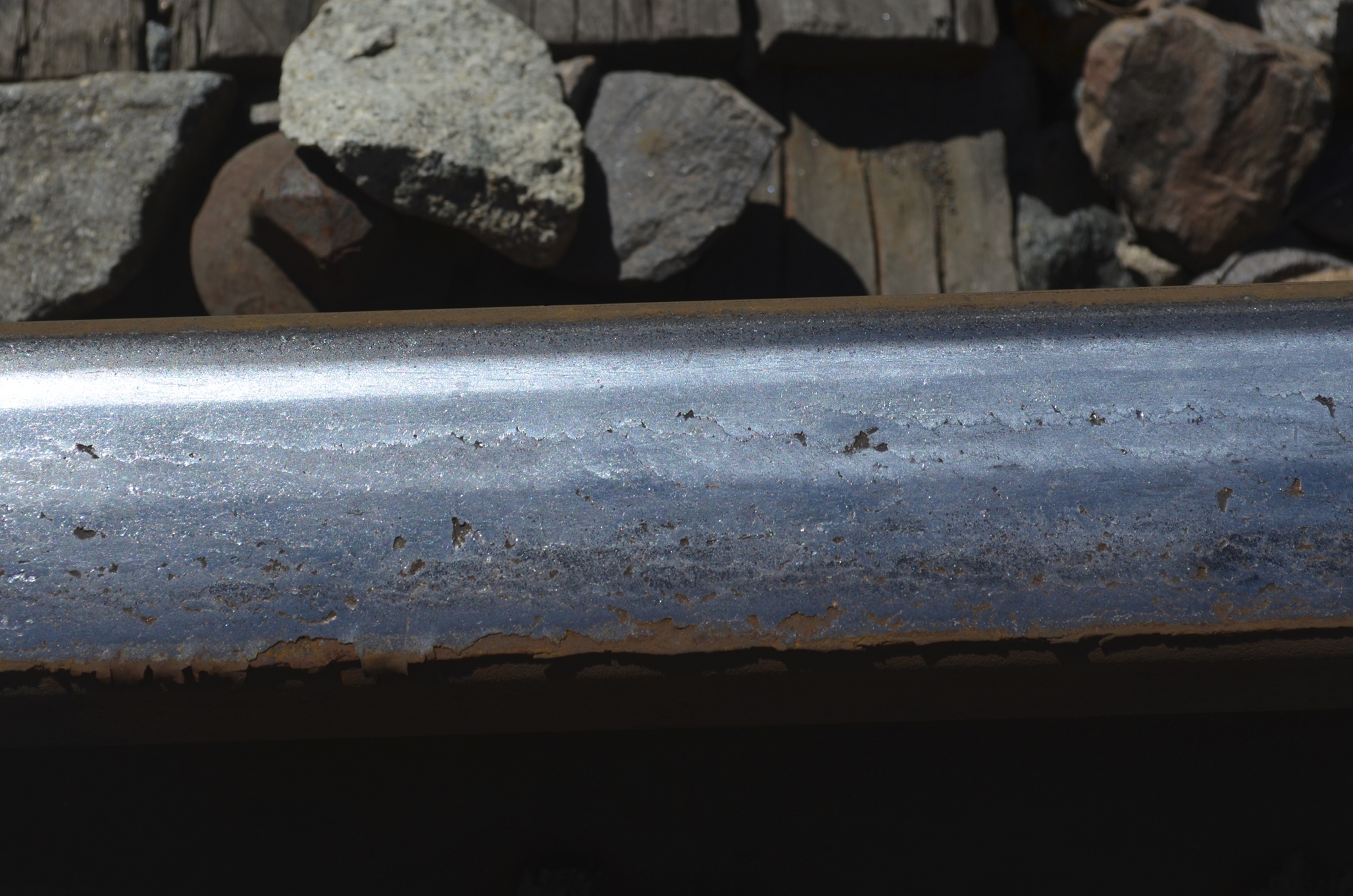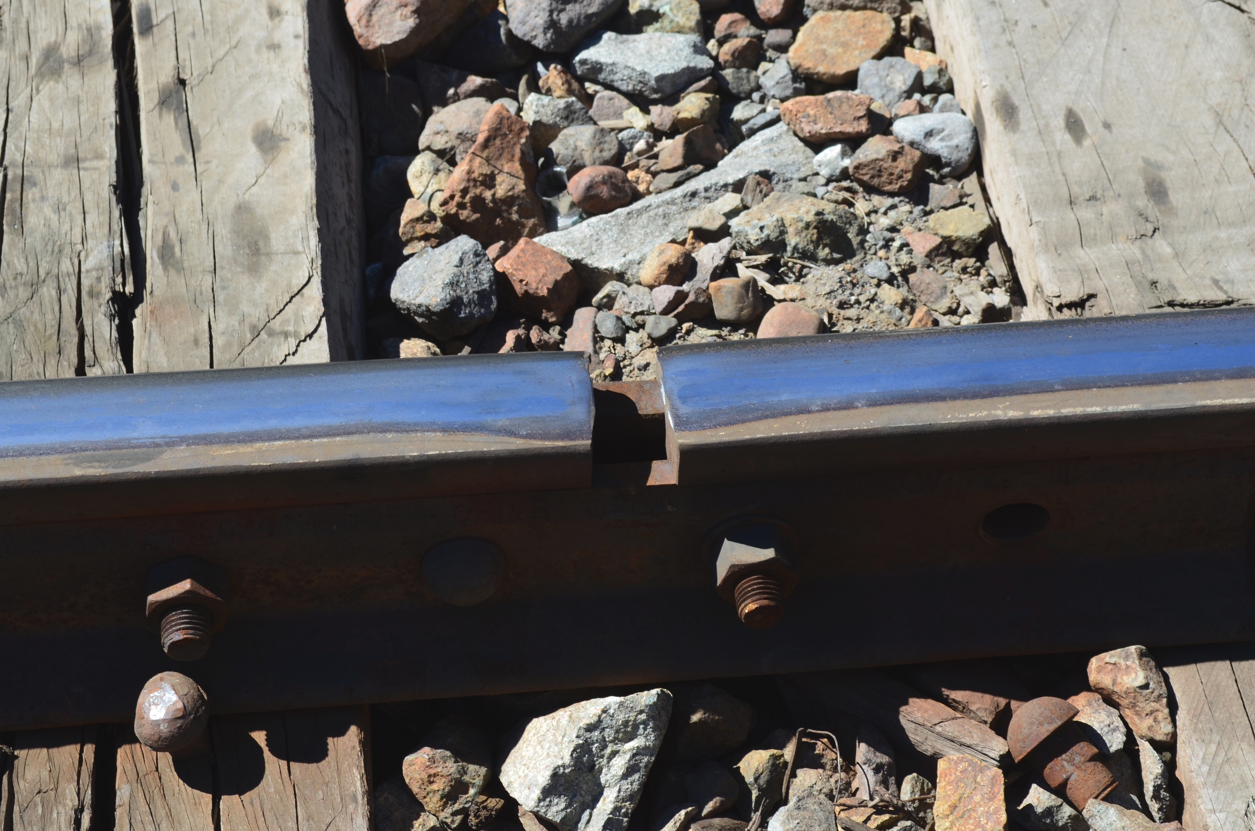 I took a quick look at the condition of the railroad track and left thinking it needs some work. Some of the joints probably should have smaller gaps, and it we can see a scale pattern in the surface. Also, that joint seems to be missing a bolt. However, this is a low speed train, so it does not have to meet the track quality standards that most trains do.