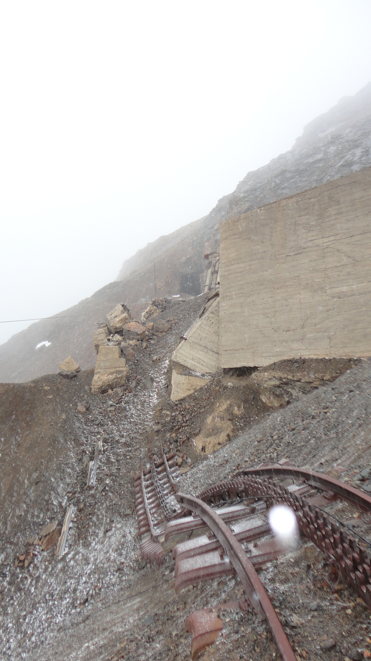 1: Facts as provided by El Ferrocarril Trasandino (ISBN 978-956-8449-08-7), page 41-44. The exact figures changed over the life of the road due to minor changes in the route and expansion of the snowsheds. One reroute can be found here where the track was rerouted to avoid avalanches. This change added 2 bridges, reduced the need for retaining walls, and probably made the railroad have slightly fewer problems with avalanches. Too bad they could not avoid the ones found further up the grade...