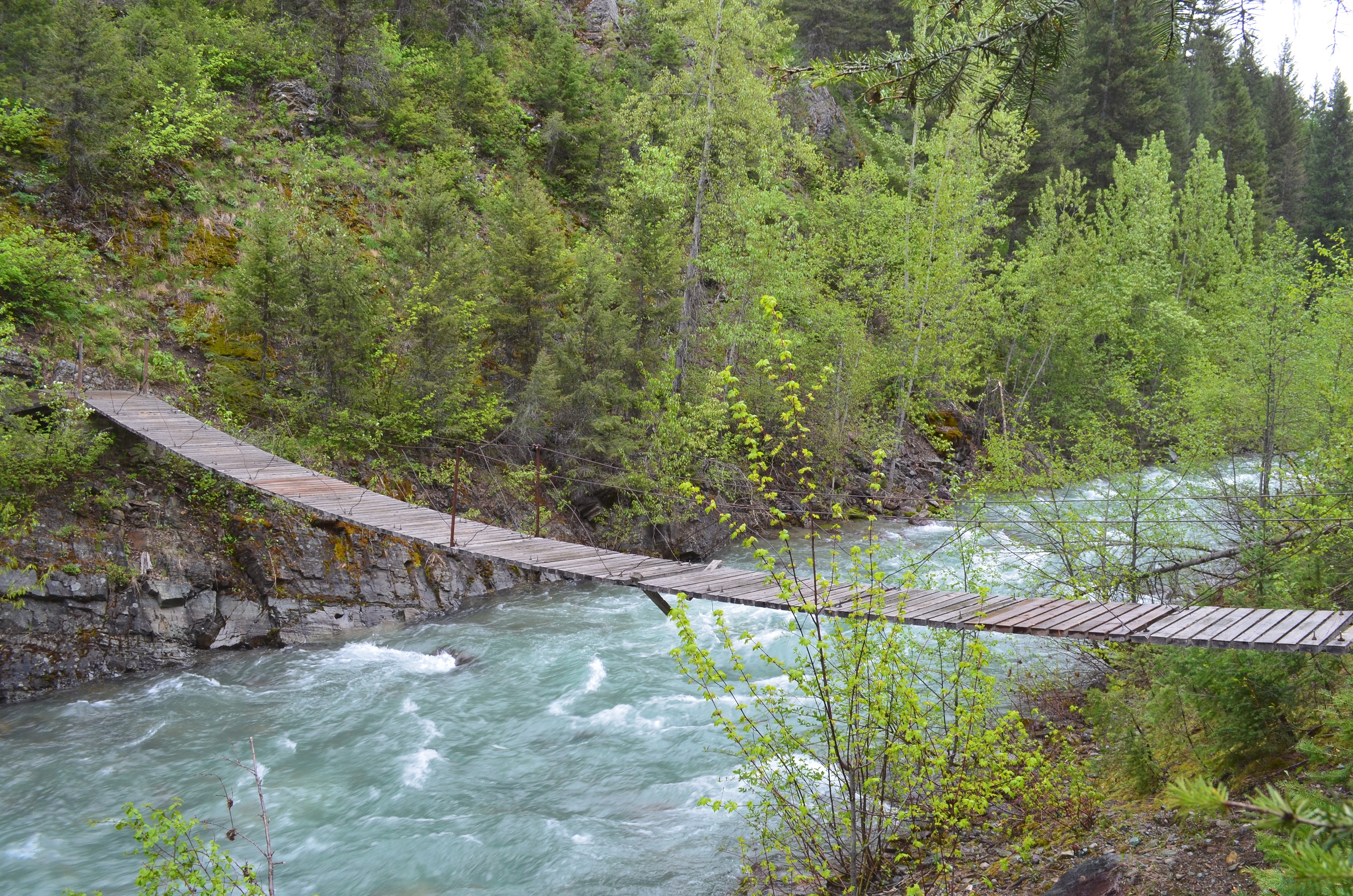 This issue covers only one scary bridge, located in Montana at the southern end of Glacier National Park. The area is densely forested and provides for general picturesque photos. Just south of the park there are numerous bridges on Highway 2 and the adjacent railroad. These make for nice pictures, such as the Sheep Creek bridge. However, so far as could be determined, they are well designed and maintained.
