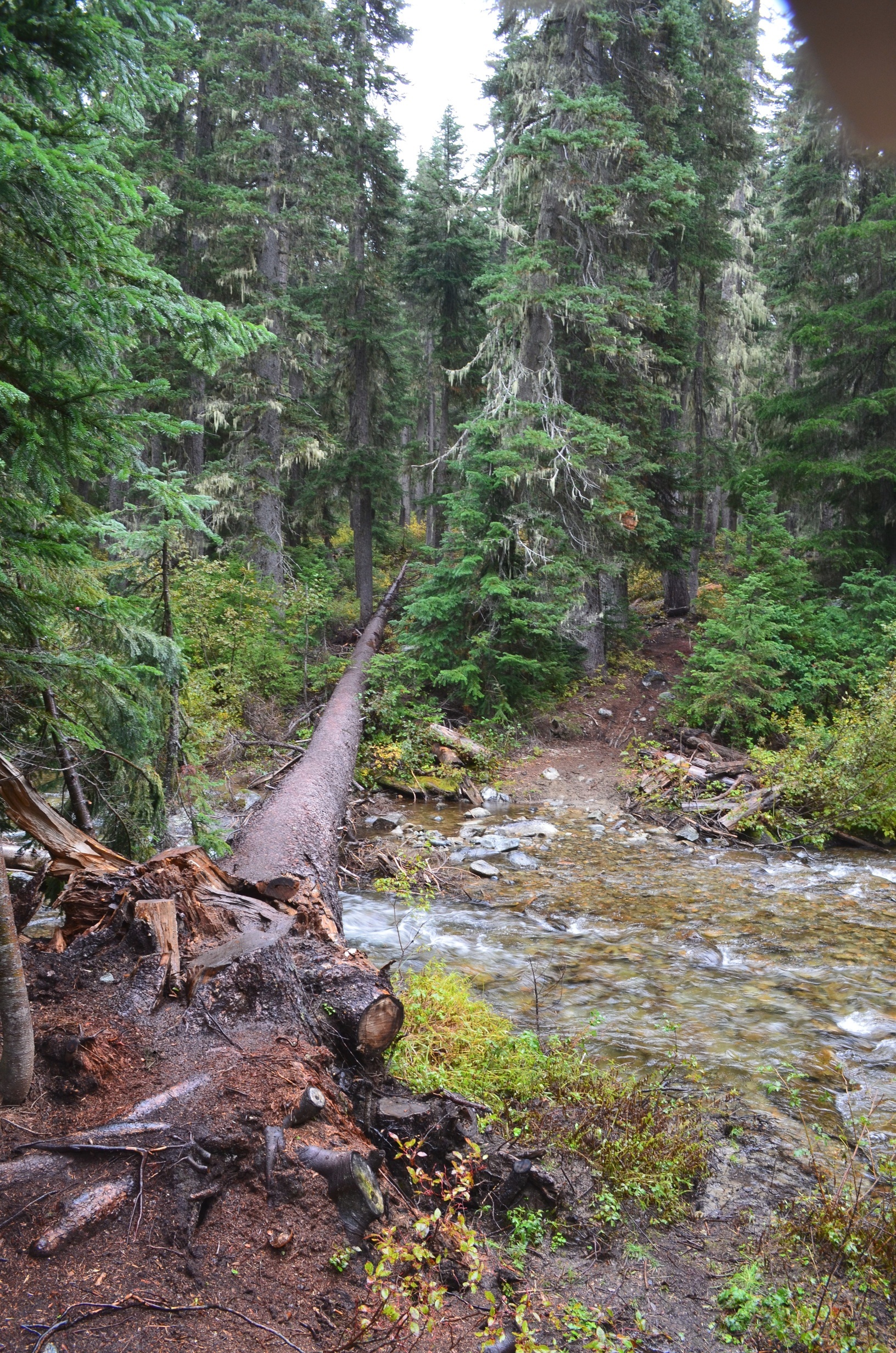 In early October 2013 snow is falling on the nearby Early Winters Spires. In about a month even the tenacious Washington State Department of Transportation will retreat from the freezing onslaught. And as the last few hikers of the season use the foot log to cross the river the Forest Service is paralyzed by ongoing government shutdown [8]. Maybe they will one day replace this bridge, but not any time soon. Or maybe over time more and more of the National Forest's bridges collapse, and only ad hoc solutions will remain - if the trails don't become disused altogether.